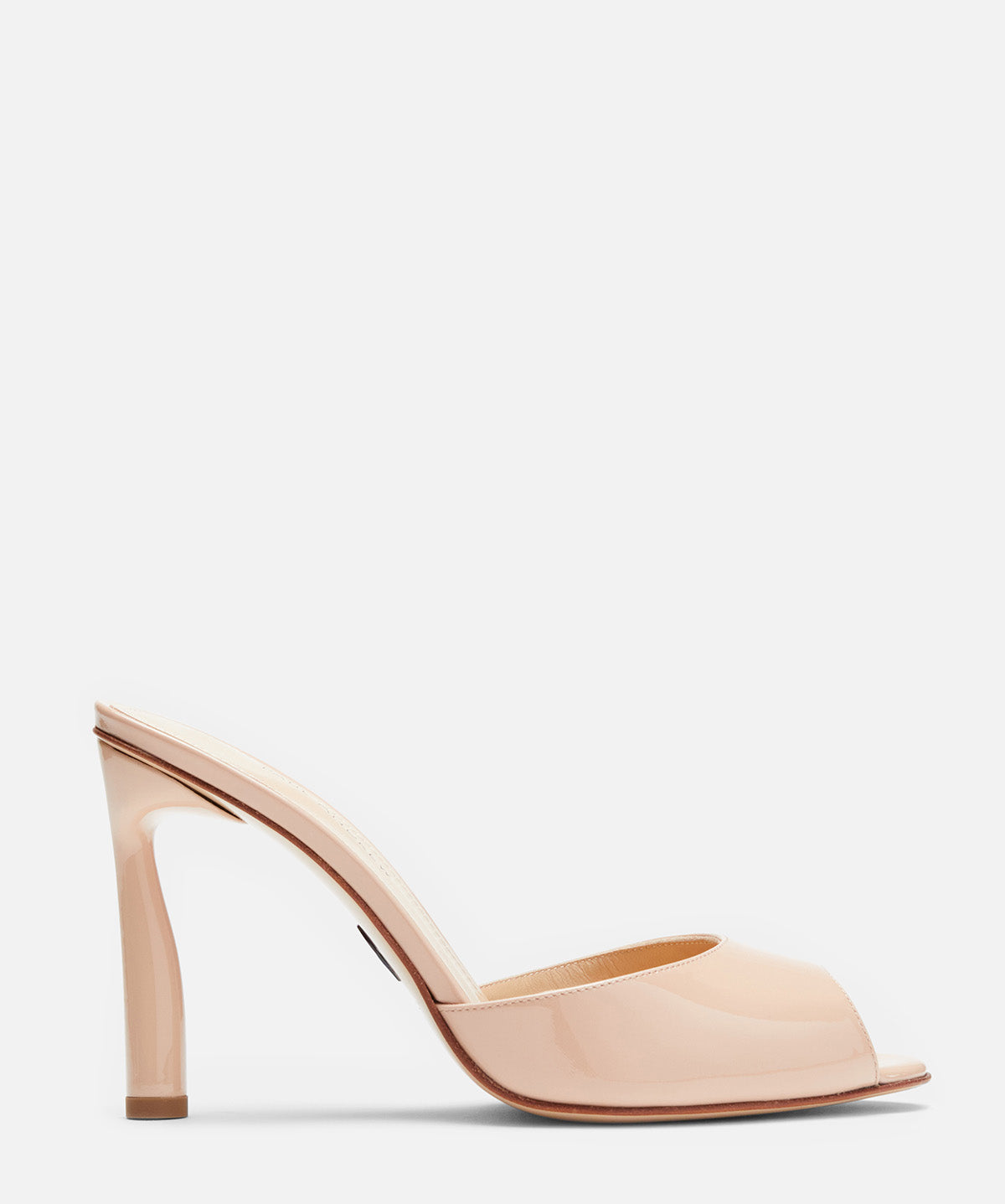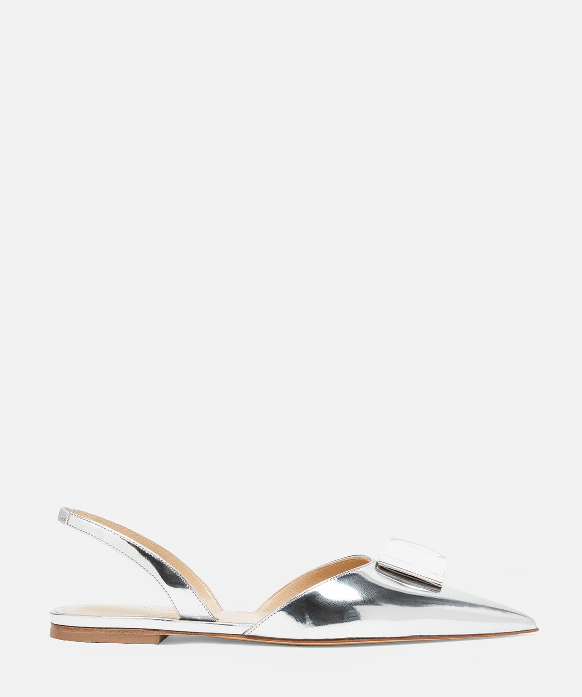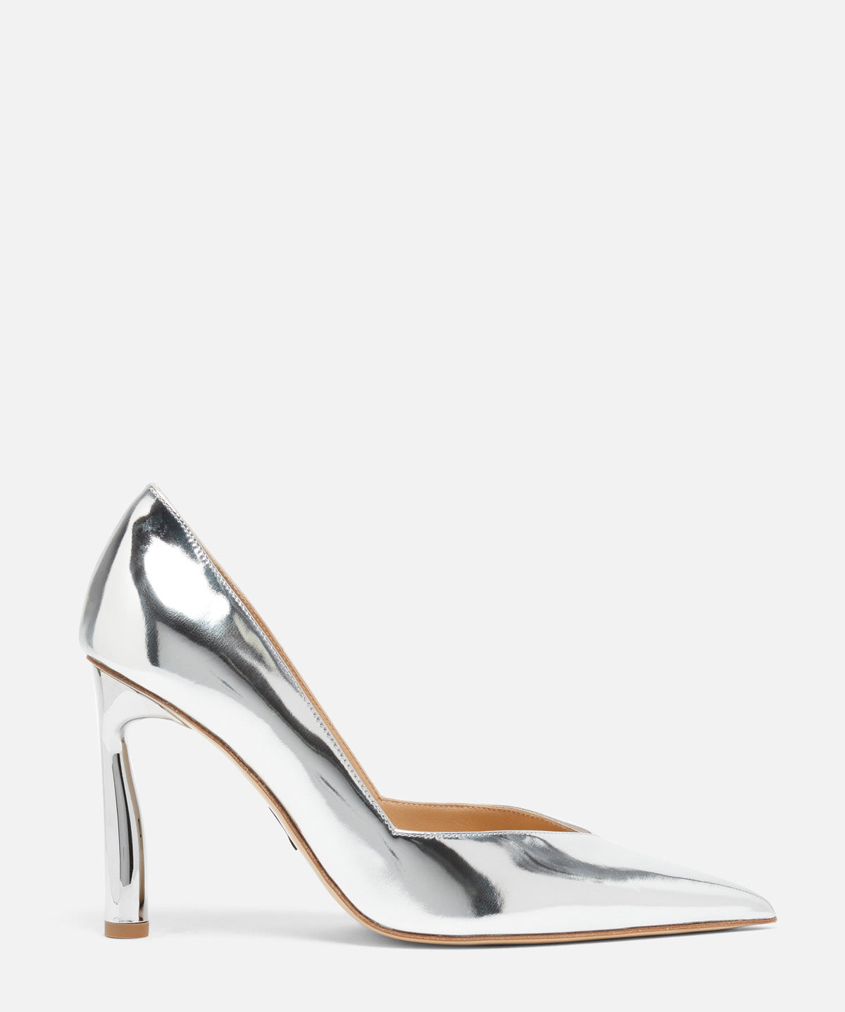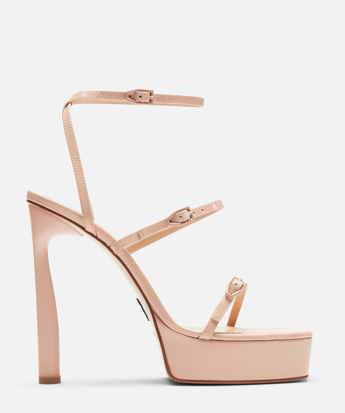 OPEN TOE ANKLE-WRAP SANDAL IN SILVER METALLIC MIRROR FEATURING A TONAL PLEXIGLASS ICE-CUBE ACCESSORY AND OUR SIGNTAURE 120mm SCULPTURAL HEEL WITH A GALVANIC FINISH WITH A 25MM PLATFORM