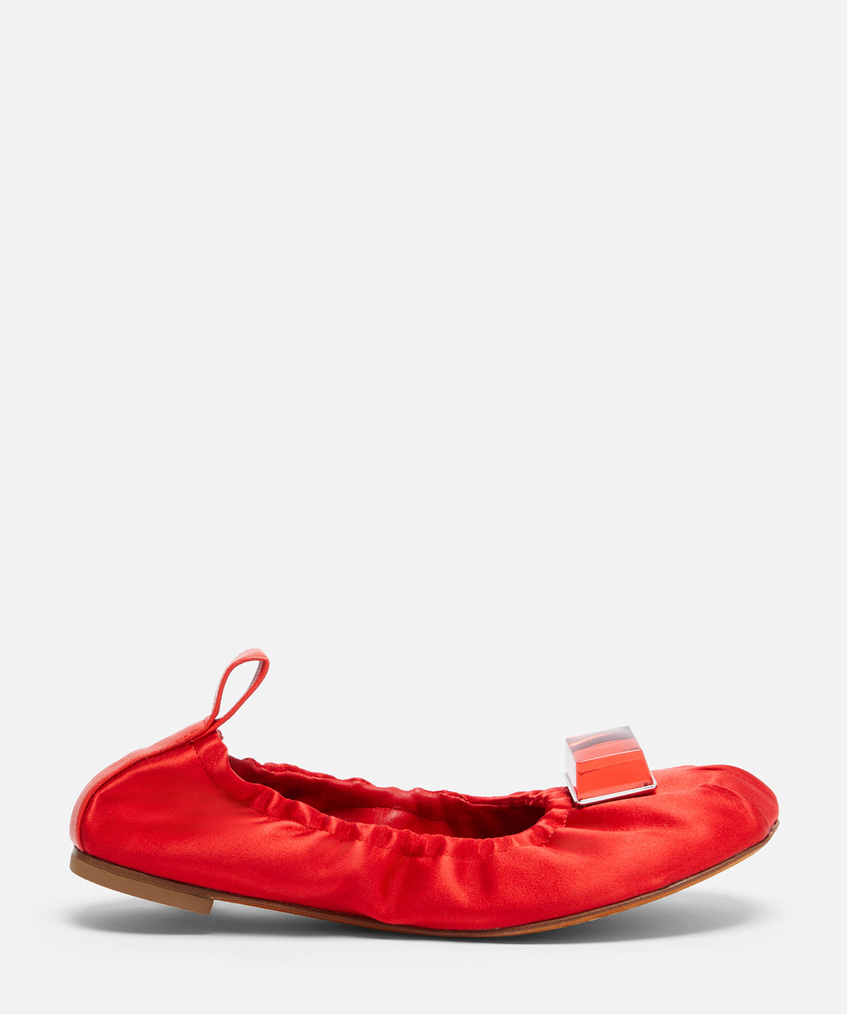OPEN TOE PLATFORM SANDAL IN TOMATO PATENT, FEATURING A TONAL PLEXIGLASS ICE-CUBE ACCESSORY ATOP OUR SIGNATURE SCULPTURAL HEEL HAND-WRAPPED IN A NATURAL JUTE ROPE