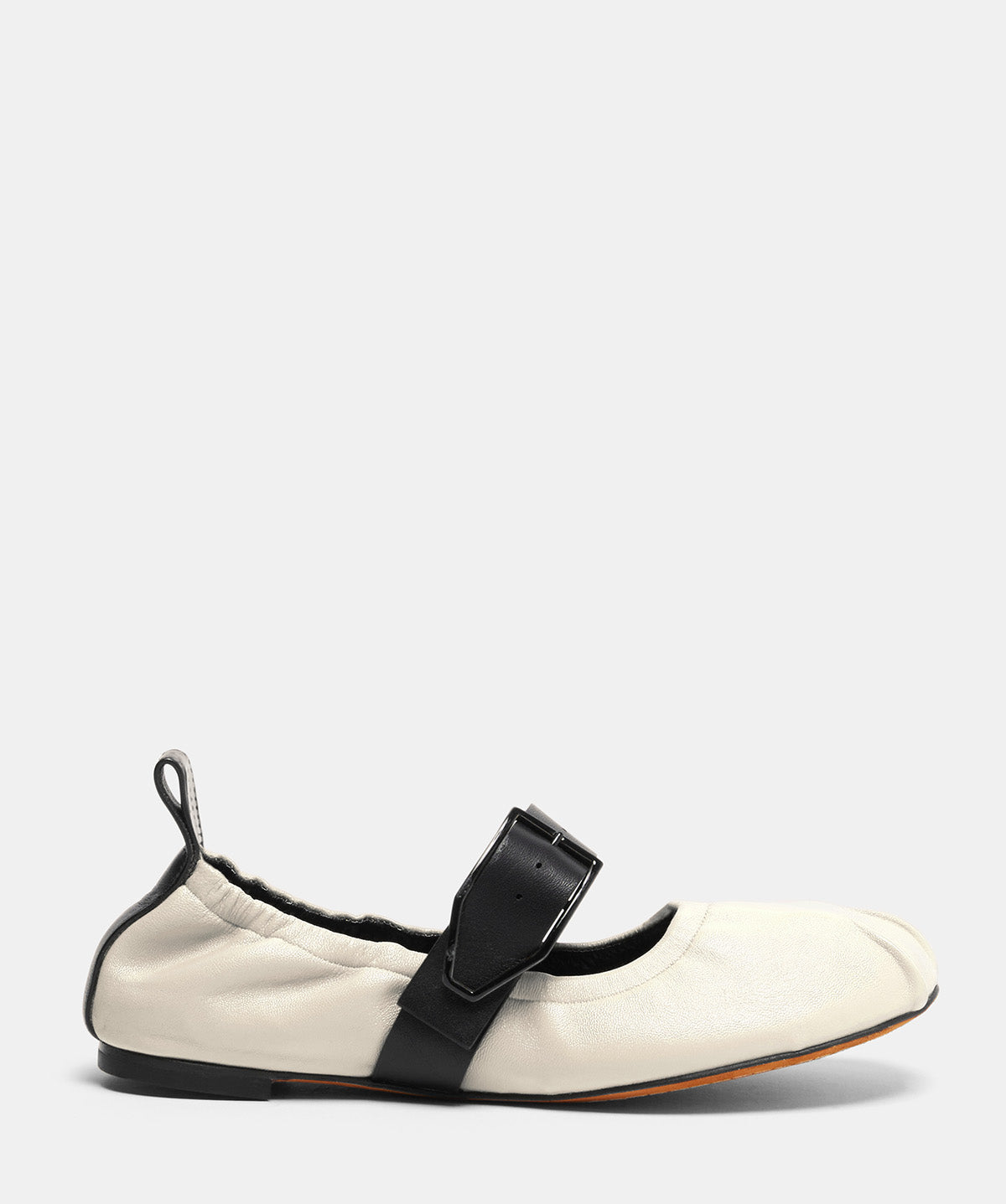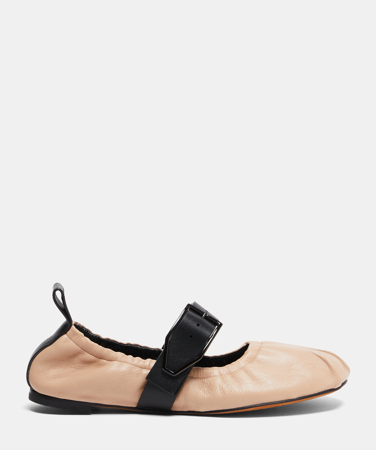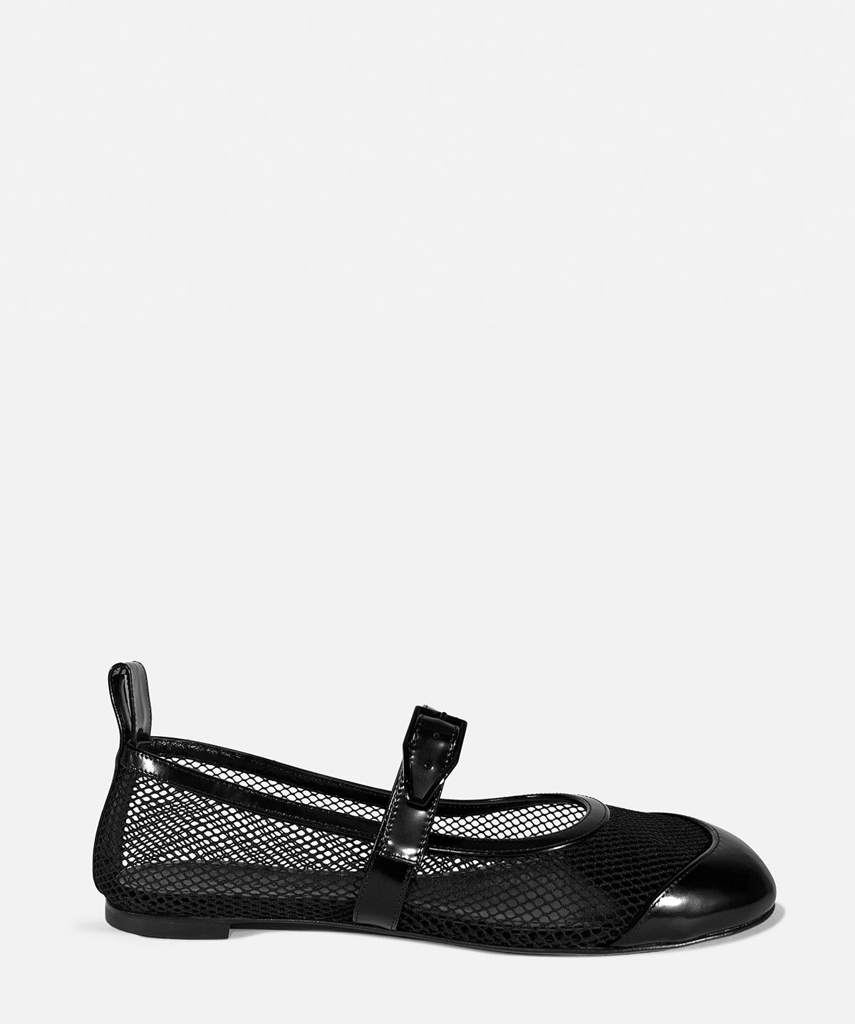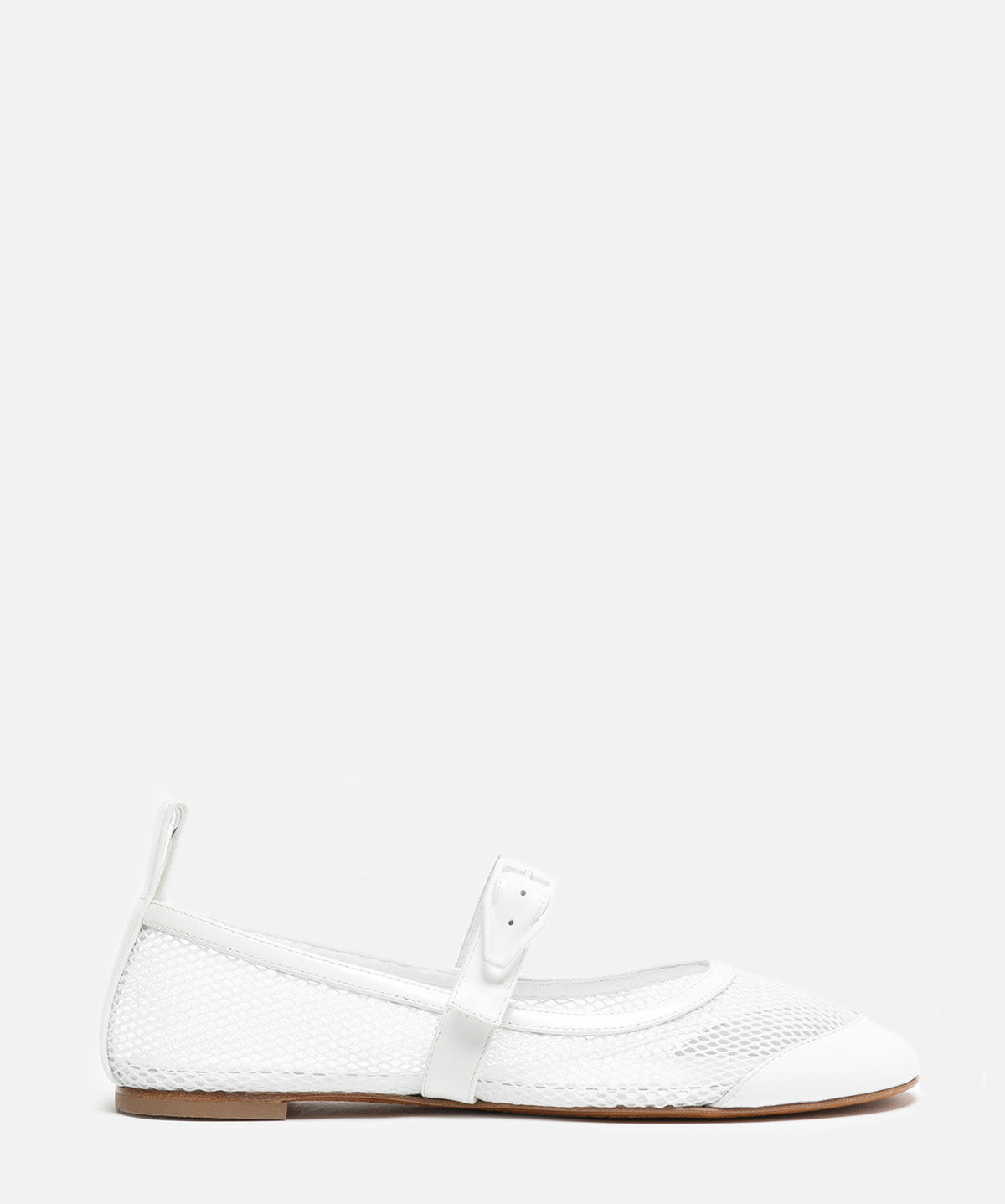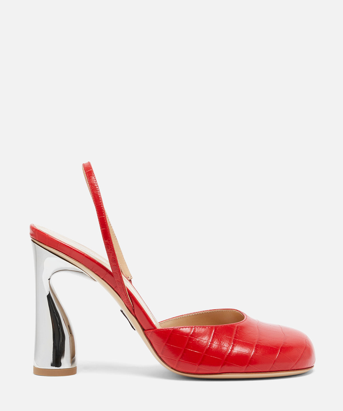 ROUND TOE ANKLE-STRAP PUMP IN SILVER METALLIC MIRROR AND METALLIC MESH WITH OUR SIGNATURE 'A' BUCKLE ATOP A SCULPURAL BLOCK HEEL WITH A GALVANIC CHROME FINISH