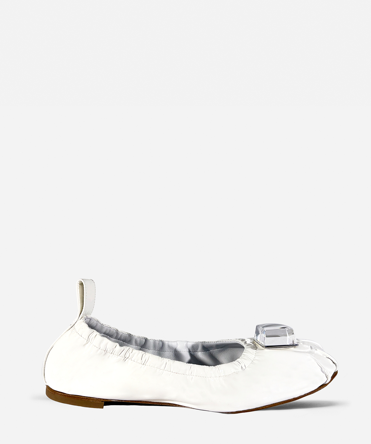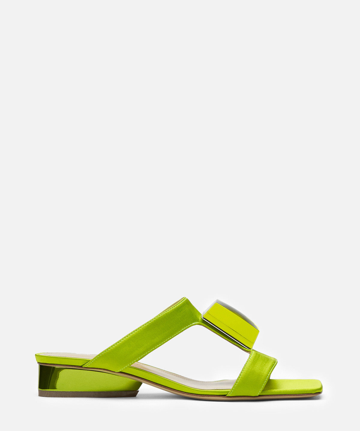 OPEN TOE SANDAL IN PEWTER METALLIC MIRROR WITH A REMOVABLE ANKLE-STRAP, FEATURING A TONAL PLEXIGLASSS ICE-CUBE ACCESSORY WITH OUR SIGNATURE 75mm SCULPTURAL STILETTO HEEL WITH A GALVANIC FINISH